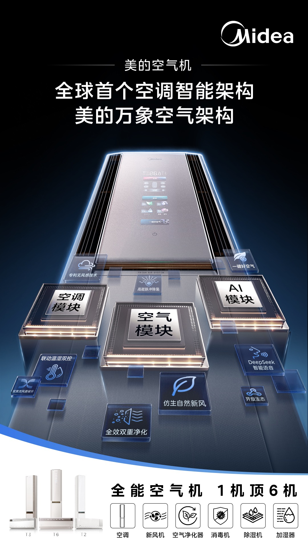 所以,我们为空气机设计了“一整个家族”,从空气机T2、T3、T5到空气机T6,分别代表不同的功能组合。你可以像搭乐高积木一样,选择你需要的。
