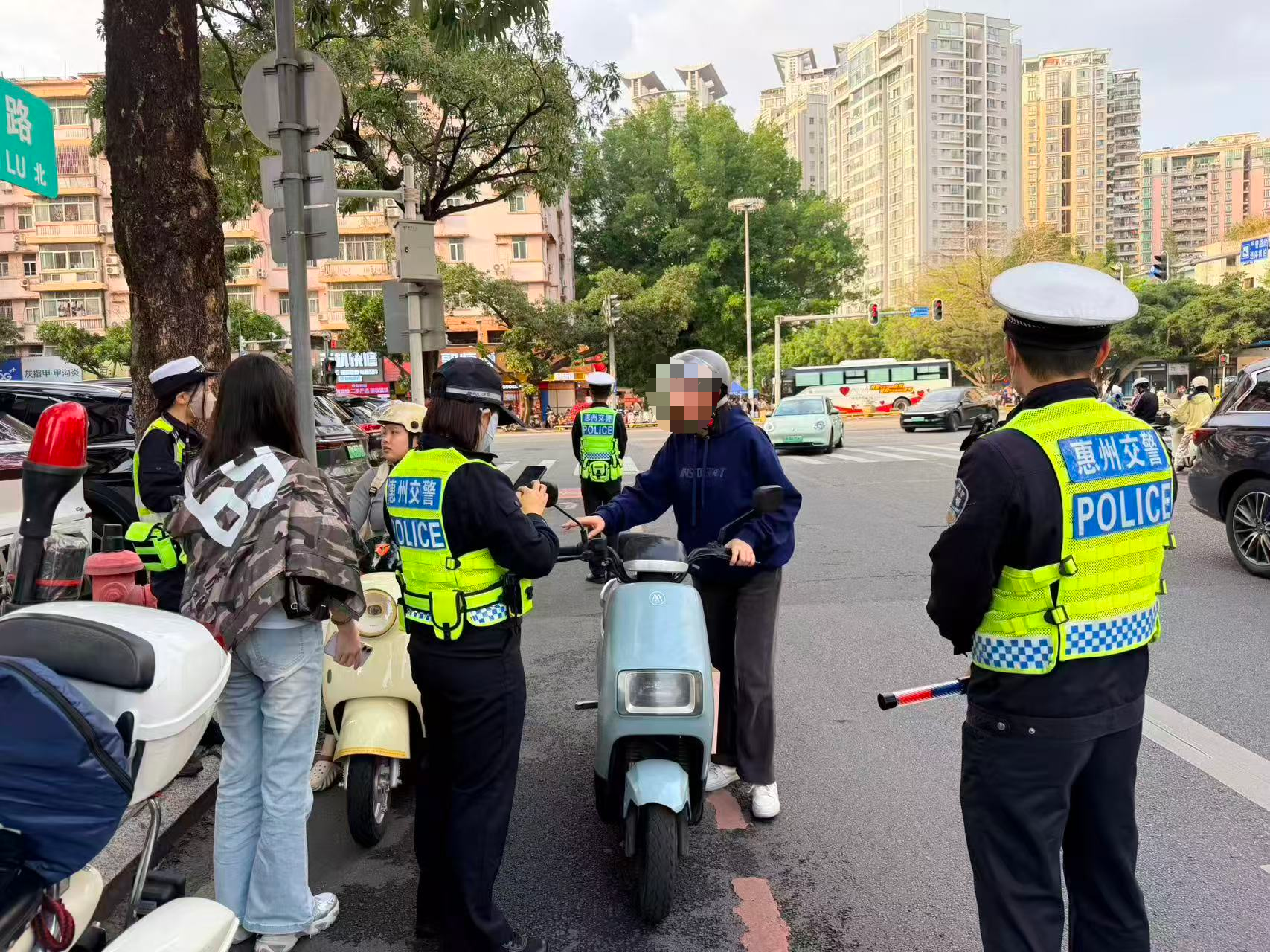 3月13日,惠州市公安局交管支队江南大队在辖区各重要路口开展电动自行车、摩托车专项整治统一行动。